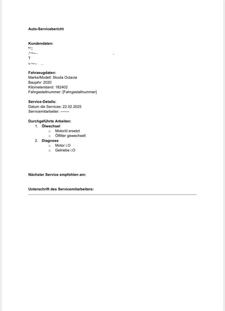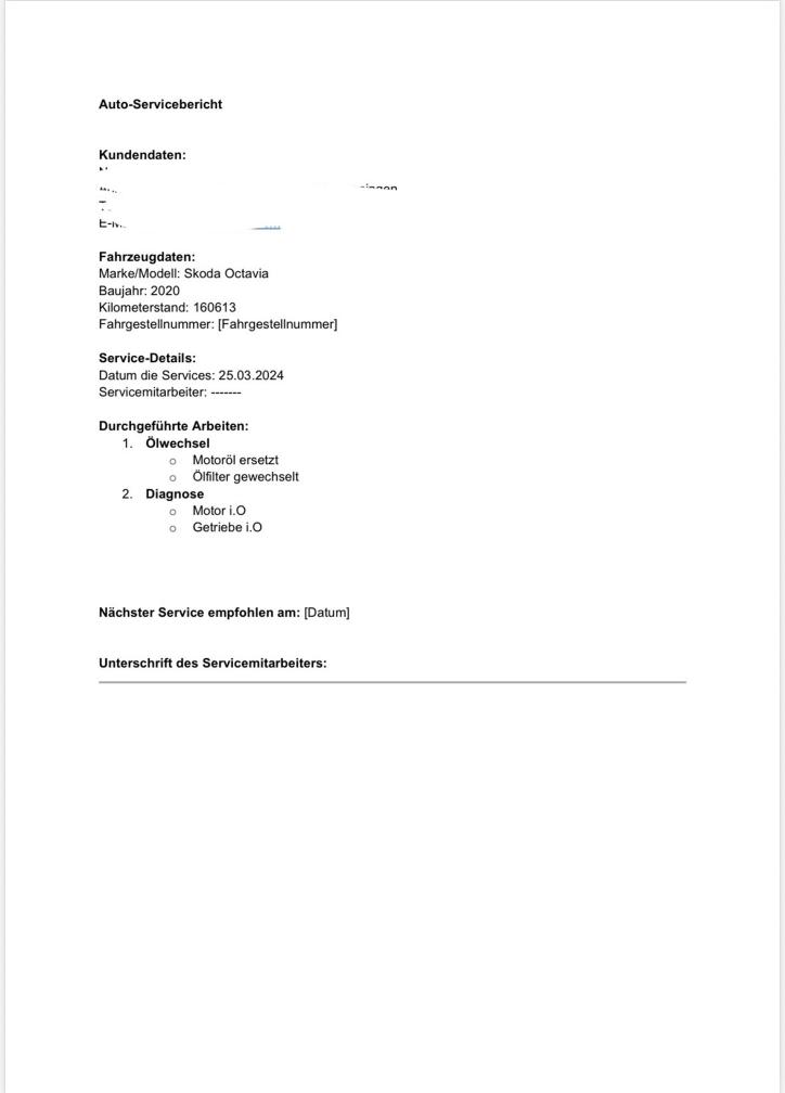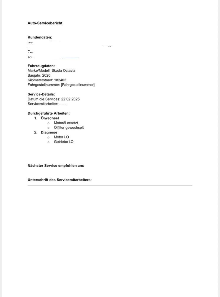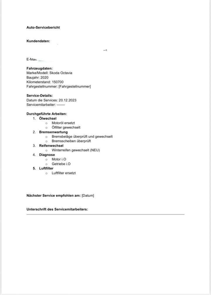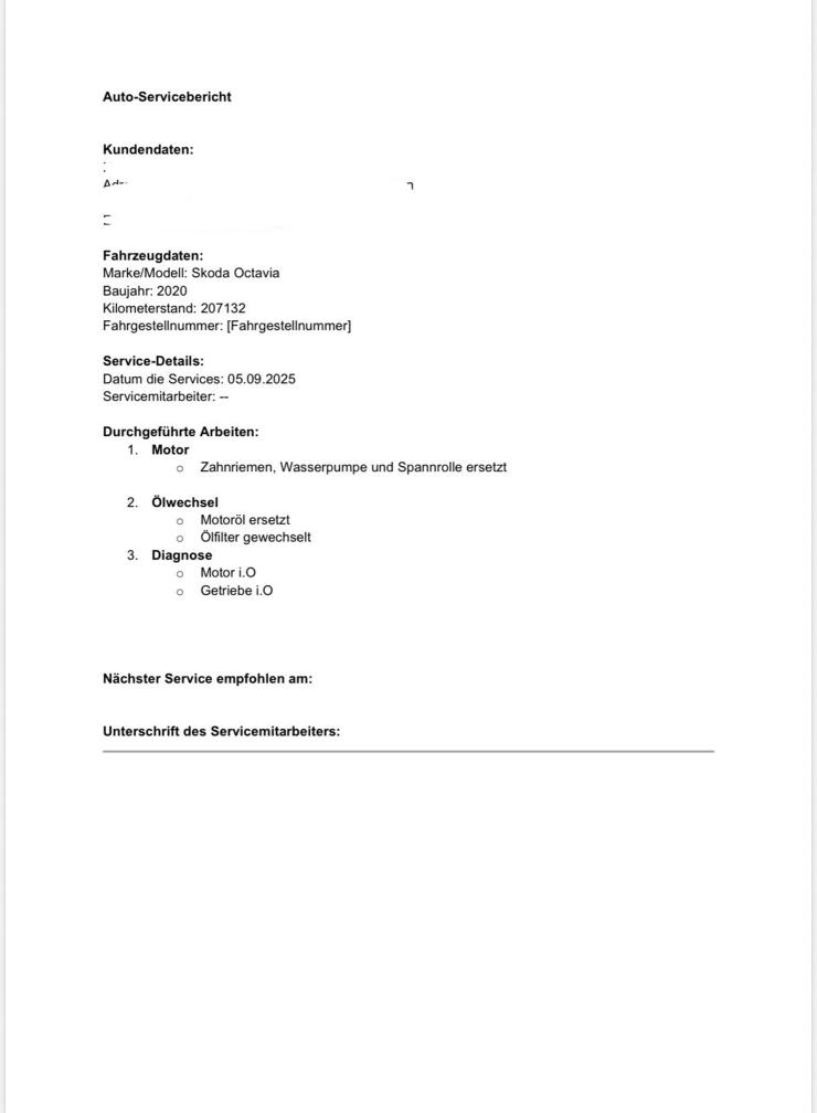 Es wurde mein Werkstatttest unsererseits durchgeführt. Der Halter ist Mechaniker und hat die Services jeweils selber durchgeführt und dokumentiert.