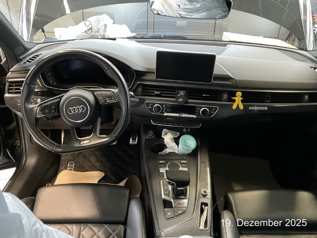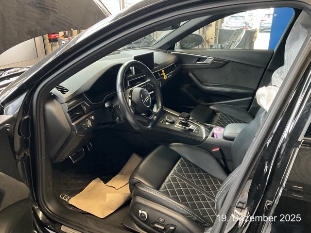 Assistenz Paket (Assist: Audi active lane assist, Verkehrszeichenerkennung RSI (Road Sign Information System), Adaptive cruise control), Ablagenpaket, Aussenspiegel in Wagenfarbe, Assist: Parklenkassistent, Komfortschlüssel inklusive sensorgesteuerter Gepäckraumentriegelung Gepäckraumklappe elektrisch öffnend und schliessend, Dekor: Interieurelemente in Kunstleder, Head-Up Display, Panorama-Glasdach, Assist: Audi hold assist, S Sportfahrwerk, Metallic-Lackierung, Dynamiklenkung, Sitze: Lendenwirbelstütze, pneumatisch einstellbar mit Massagefunktion, Licht- und Regensensor, Mittelarmlehne vorne, mit aufklappbarem Staufach, zwei 12V Steckdosen, Vorbereitung für Anhängevorrichtung, Ambientebeleuchtung, Audi Sound System, S Sportsitze, Garantie: Audi Garantie: 4 Jahre oder 120'000 km (ab 1. Inv.), Getönte Scheiben Privacy, Media: Bang & Olufsen Soundsystem, Media: Audi Phone Box inkl.LTE, Carbon Applikationen, Scheinwerfer-Waschanlage, Innenspiegel automatisch abblendbar, Dachreling schwarz, Multifunktions-Sportlenkrad in Leder, unten abgeflacht