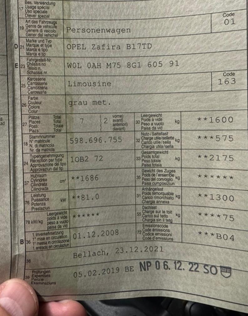 OPEL Zafira B17TD
