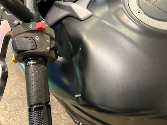 Gabel, Gabel-T-Stück, Tank, GA-Hebel, AV-Verkleidung, Windschutzscheibe, ARG-Verkleidung, ARG-Fusskeil, Kettenschutz beschädigt.