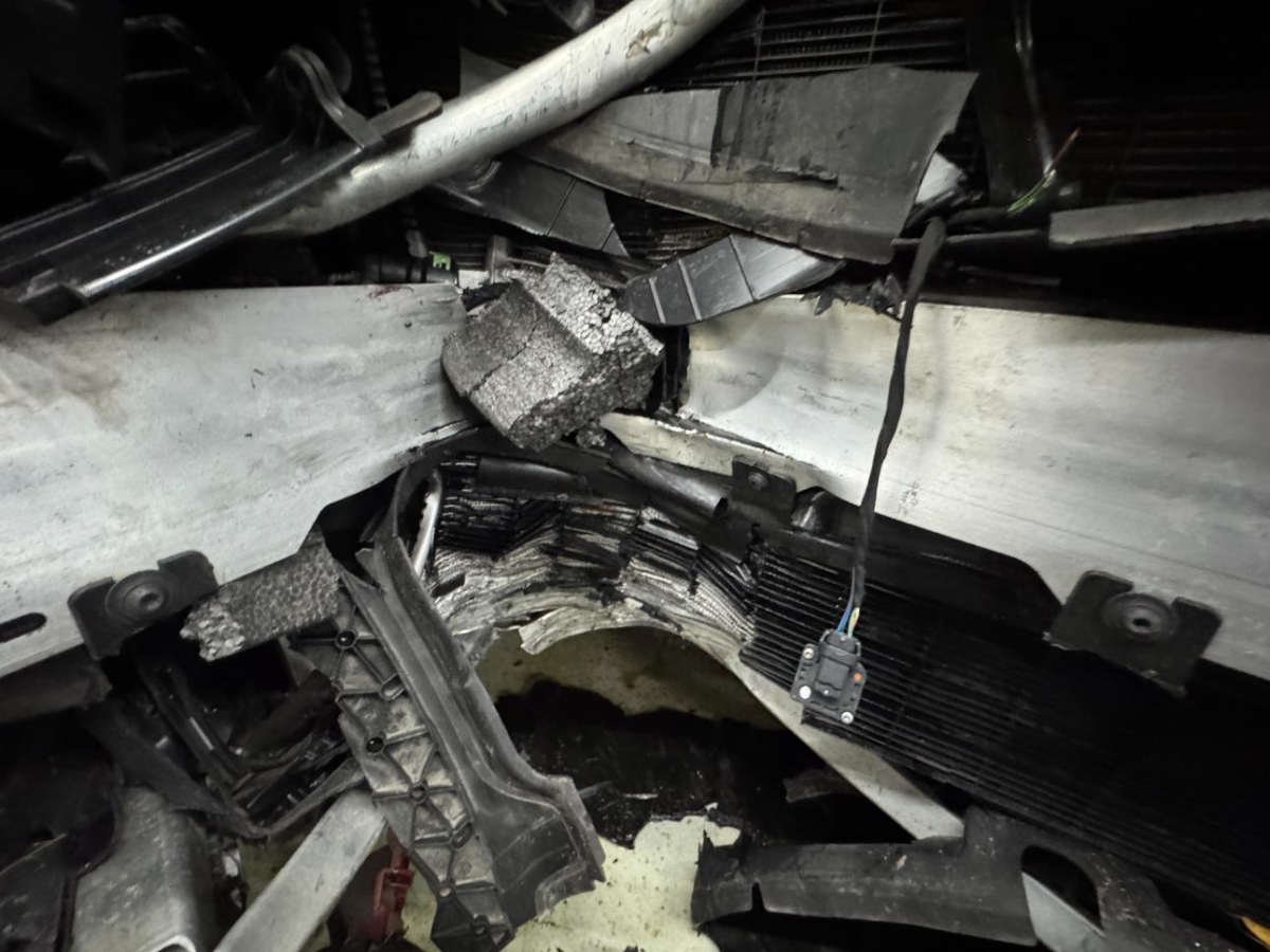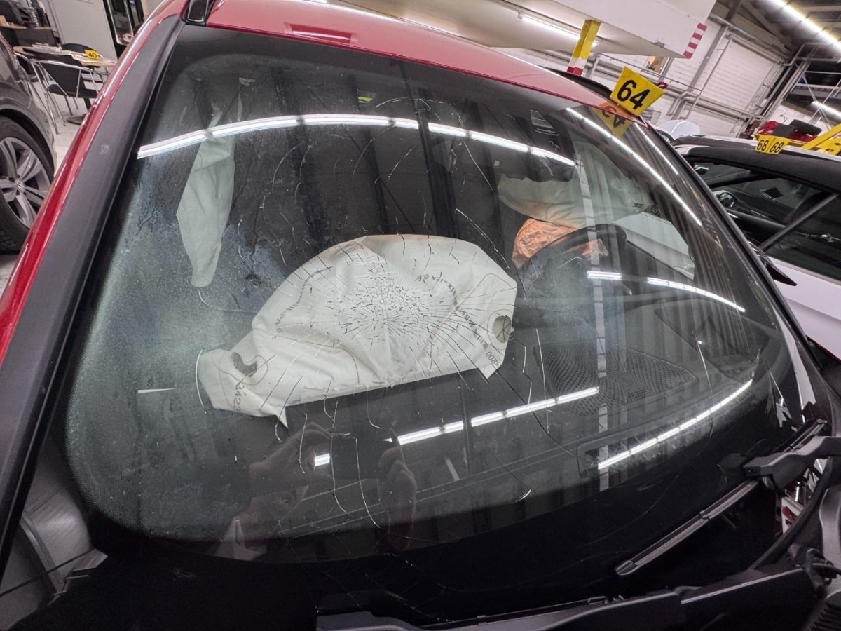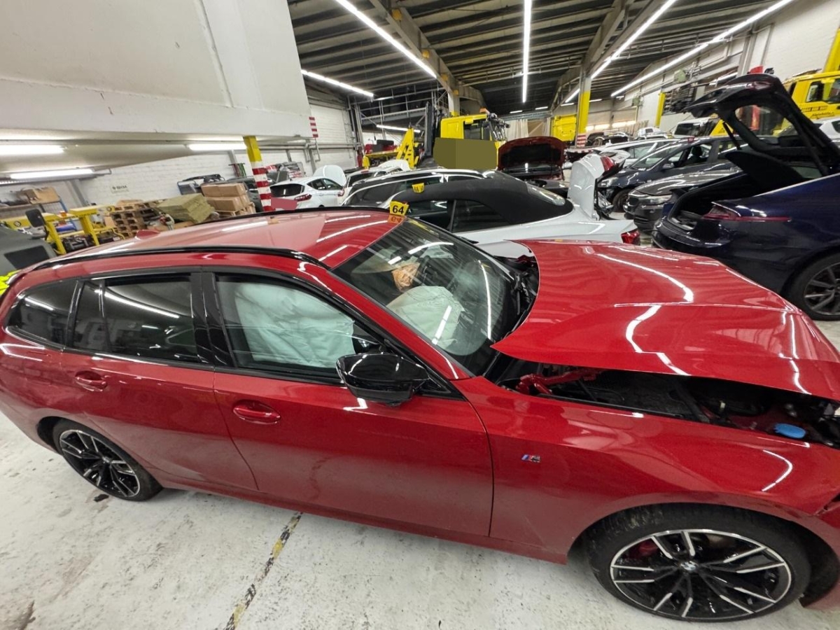 Airbag ausgelöst, Armaturenbrett, Front, Front links, Front rechts, Frontblech, Frontscheibe, Gurtstraffer ausgelöst, Kabelstrang, Klimakühler, Kotflügel links, Kotflügel rechts, Kühler, Kühlgitter, Ladeluftkühler, Längsträger vorne links, Längsträger vorne rechts, Motorhaube, Scheinwerfer links, Scheinwerfer rechts, Schlossträger, Stosstange vorne