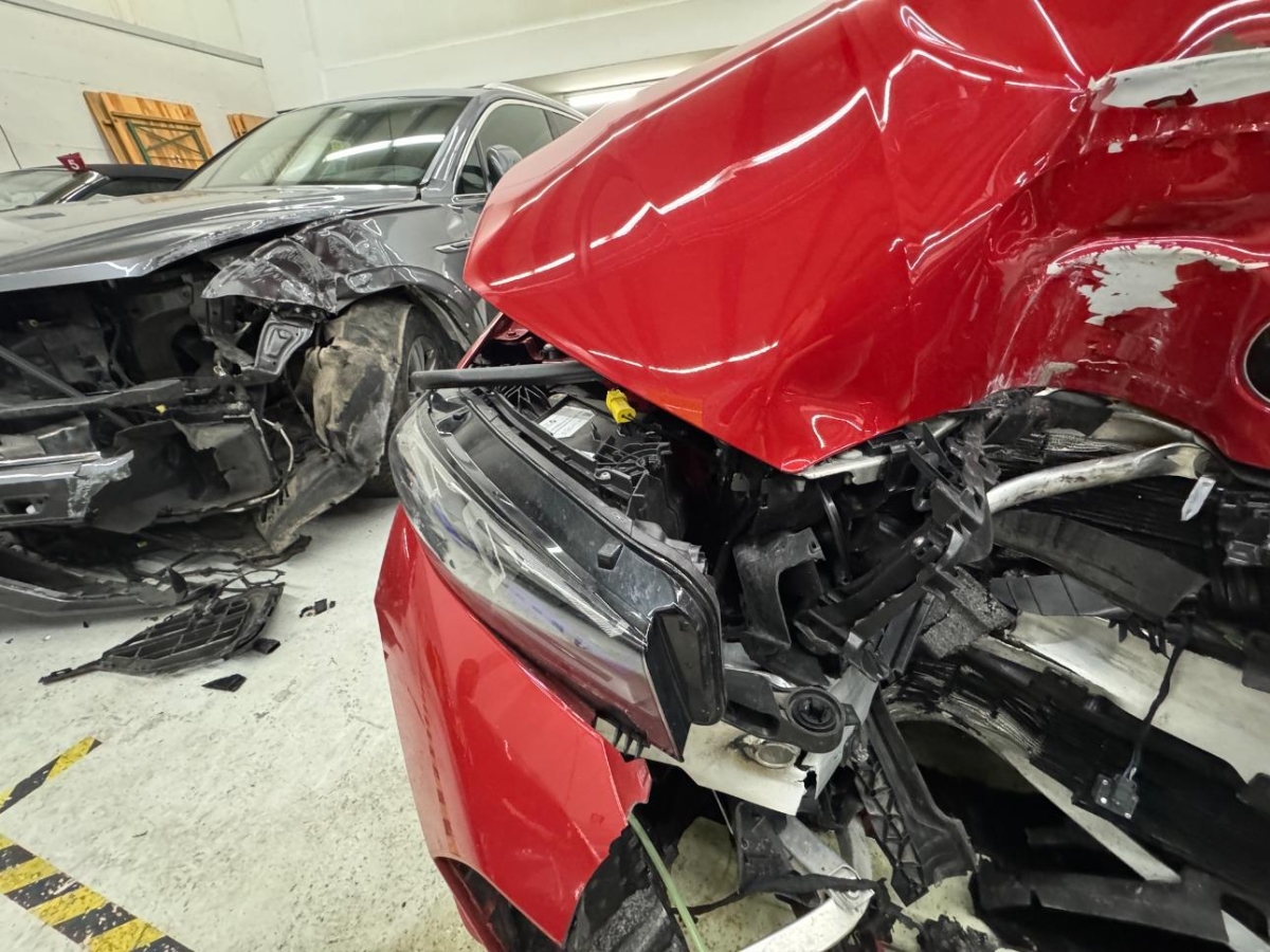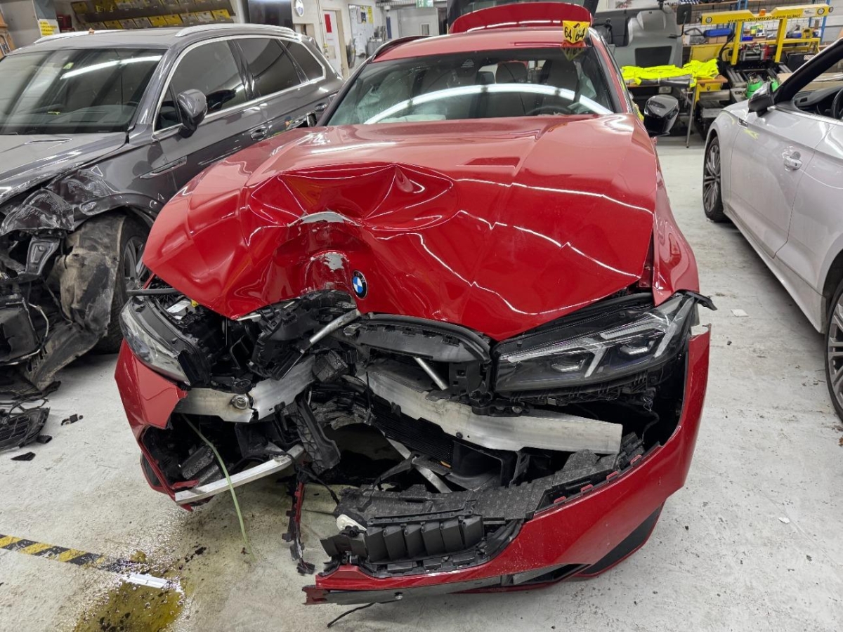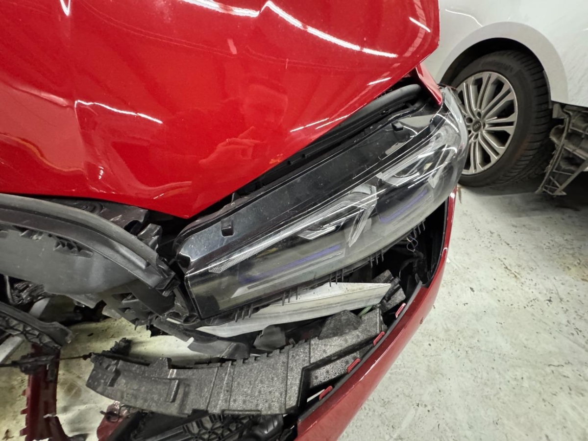 Airbag ausgelöst, Armaturenbrett, Front, Front links, Front rechts, Frontblech, Frontscheibe, Gurtstraffer ausgelöst, Kabelstrang, Klimakühler, Kotflügel links, Kotflügel rechts, Kühler, Kühlgitter, Ladeluftkühler, Längsträger vorne links, Längsträger vorne rechts, Motorhaube, Scheinwerfer links, Scheinwerfer rechts, Schlossträger, Stosstange vorne