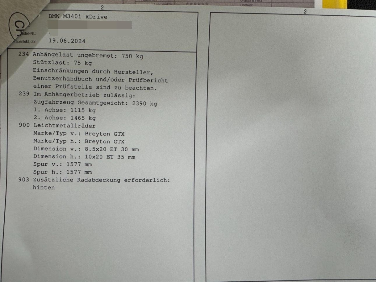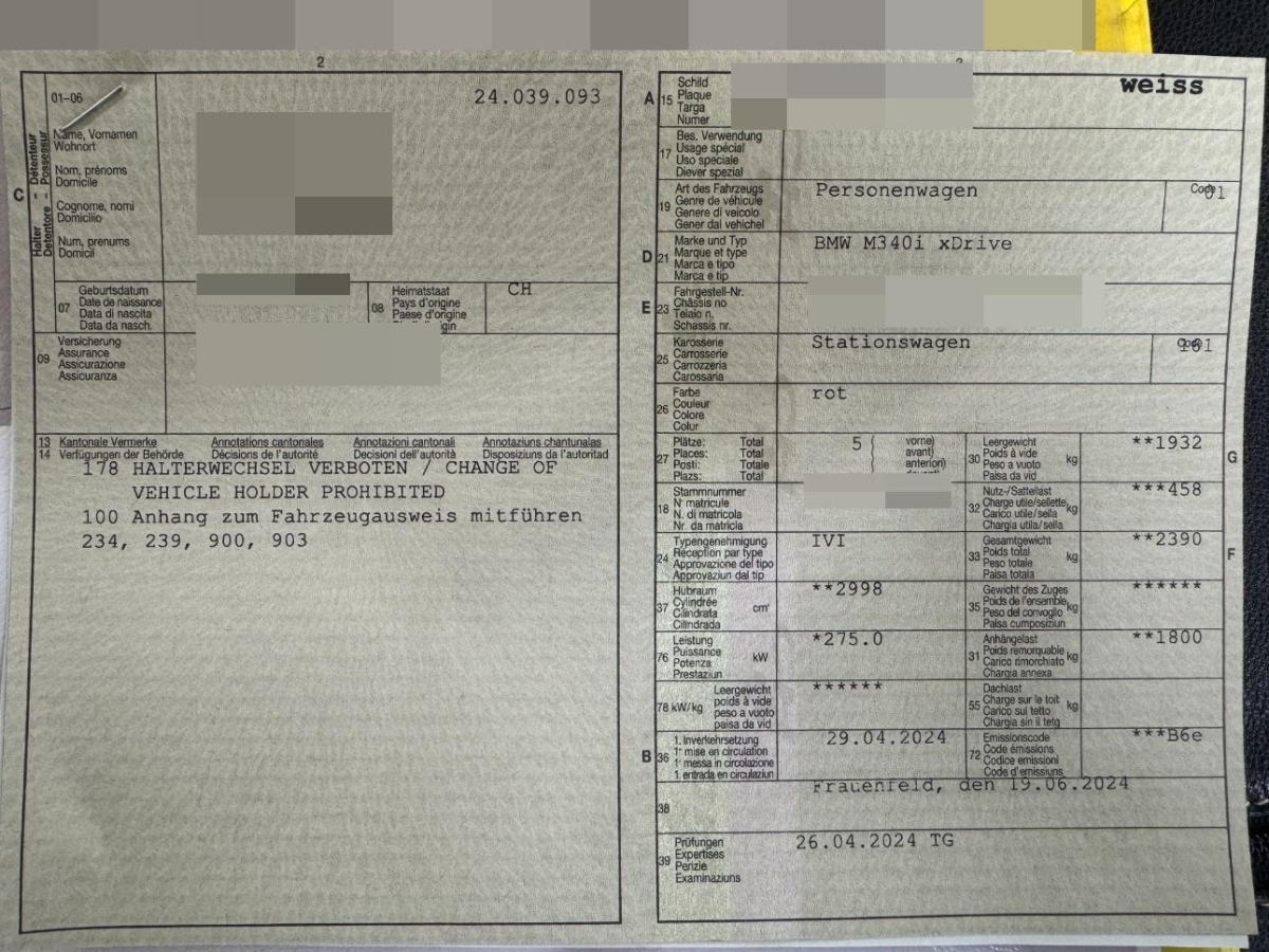 Teleservices, Ottopartikelfilter, Media: HiFi Lautsprechersystem HiFi-Lautsprechersystem, digitaler Verstärker, 205 W Verstärkerleistung. 10 Lautsprecher: - 1 Mitteltöner und 1 Hochtöner in der Instrumententafel - 2 Hochtöner in den Spiegeldreiecken - 4 Mitteltöner in den Türverkleidungen vorne und hinten - 2 Zentralbässe unter den Vordersitzen, Innenbeleuchtung, Auto Start Stop Funktion, Fahrwerk: M Sportdifferential - Verteilung des Antriebsmoments zwischen den Hinterrädern optimiert Traktion, Agilität sowie Fahrstabilität - Elektronische Regelung des Sperrgrads der Hinterachse je nach Fahrsituation und Fahrbahnbeschaffenheit zwischen 0 und 100% - Traktion: variable Zuweisung von «mehr Drehmoment» auf das Rad mit besserer Bodenhaftung ermöglicht bessere (Anfahr-)Traktion auch bei Kurvenfahrten - Agilität: Ermöglichung höheres Querbeschleunigungs- und Fahrdynamikpotenzial, Airbag: Seitenairbag für Fahrer und Beifahrer, Sitze: Sportsitze für Fahrer und Beifahrer - manuelle Einstellung für Sitzhöhe, Lehnenneigung, Sitzneigung und Sitztiefungverstellung - manuelle Einstellung für Sitzlängsrichtung und Kopfstützenhöhe, Lackierung: Uni-Lackierung, Räder: Reifen Pannen Anzeige, BMW Mobile Care - BMW Mobile Care: Pannen- und Unfallhilfe - Die BMW Pannen- und Unfallhilfe ist an 365 Tagen im Jahr rund um die Uhr im In- und Ausland für Sie da und das bis zu fünf Jahre nach der Erstzulassung Ihres Fahrzeugs., Fensterheber, elektrisch - Einklemmschutz und Komfortöffnung/-schließung, Sitze: Sitzverstellung, elektrisch mit Memory - Elektrisch verstellbar: Sitzhöhe, Lehnenneigung, Sitzposition, Sitzflächenneigung - Fahrersitz mit Sitzmemory, 2 Positionen speicherbar inklusive Spiegelposition - Aussenspiegel: Memoryfunktion, Bordsteinautomatik, Kennzeichenbeleuchtung in LED, Assist: Park Distance Control vorne und hinten, Gesetzlicher Notruf, Paket: Ablagenpaket Im Interieur: - Mittelkonsole, hinten: eine Doppel-USB-Buchse (nur Laden: Typ C/3,0 A) - Fahrer- und Beifahrersitz: Netze an Sitzlehnerückseite, jeweils in Farbe der Sitzblende Im Gepäckraum: - Netz, schwarz, mit Rahmen, links, rechts - Multifunktionshaken, Assist: Dynamische Stabilitäts Control (DSC) mit erweiterten Umfängen, M Leuchten Shadow Line - Ausführung ausgewählter Elemente der Leuchte in Dunkel, kein Einfluss auf Leuchtfarbe und -intensität., Airbag: Kopfairbag 1. und 2. Sitzreihe, Regensensor, Licht: Heckleuchten in LED-Technik, Fussmatten in Velours, Fahrwerk: M Sportfahrwerk - Straffere Feder-/Dämpferauslegung mit Fahrzeugtieferlegung um 10 mm - Noch direktere Fahrwerksauslegung welche eine sportliche Fahrweise begünstigt, Assist: Speed Limiter, Ambientes Licht - dynamische Funktion des Ambiente Lichtes für 4 Anwendungsfälle: Welcome, Good Bye, Offene Türe, Telefonanruf - umfasst 9 wählbare Farben (elfenbein, citrin, smaragd, türkis, perle, azur, flamingo, koralle, rose) - ambiente Wasserfallbeleuchtung vorne und hinten - ambiente Fußraumbeleuchtung vorne und hinten - ambiente Ablagefachbeleuchtung der Mittelkonsole - Konturbeleuchtung in Instrumententafel und Türverkleidung - ambiente Türöffnerbeleuchtung, Endrohrblenden, sichtbar, Warndreieck - inklusive Erste-Hilfe-Set, Wärme-/Sonnenschutzverglasung, M Dachhimmel Anthrazit, Sitze: Kopfstützen hinten abklappbar, Getriebe: 8-Stufen-Automat Steptronic Sport, Räder: Reifendruck-Kontrolle, Media: BMW Live Cockpit Plus - Anzeigeverbund bestehend aus einem volldigitalen Instrumentendisplay mit 12,3" und einem hochauflösendem Control Display mit 14,9" - BMW Operating System 8 - Navigationsfunktion - Intuitive Bedienmöglichkeiten - Fahrerprofil - Tuner mit Diversity-Empfang und RDS - 1 x USB Typ, A 1 x USB Typ C - Bluetooth / WiFi Schnittstelle - 4G LTE Connectivity - Remote Software Upgrade, Licht: Begrüssungslicht, Räder: Radschraubensicherung, Getränkehalter, Elektronische Wegfahrsperre, M Sicherheitsgurte - Sicherheitsgurte in schwarz mit M spezifischen Streifen, Lenkrad: Lenkrad längs- und höhenverstellbar, Airbag: Airbag Beifahrer deaktivierbar, Licht: LED-Scheinwerfer - Abblendlicht (Bi-LED-Technologie) - Fernlicht (Bi-LED-Technologie) - Tagfahrlicht LED-Technologie) - Fahrtrichtungsanzeiger Augenbraue (LED-Technologie), Condition Based Service, Parkbremse, elektromechanisch, Ablagemöglichkeiten, Media: DAB+ Tuner, Verzurrösen, Seitenaufprallschutz, Lenkrad: M Lederlenkrad, Armauflage vorn und hinten, in Türverkleidung integriert, Klima: Klimaautomatik - 3-Zonen-Klimaautomatik mit erweiterten Umfängen - Soll-Temperaturregelung sowie Einstellung von Luftmenge und Luftverteilung für Fahrer und Beifahrer getrennt einstellbar. - Temperierung Belüftung Oberkörper über MMI für Fahrer/Beifahrer getrennt einstellbar. - Individuelle Automatik-Regelung mit 5 Intensitätsstufen für Fahrer/Beifahrer getrennt einstellbar. - SYNC-Funktion: Fahrereinstellung gelten für den gesamten Fahrzeuginnenraum. - Digitales Display Mittelkonsole hinten, Schliessystem mit Zentralverriegelung inklusive 2 Fernbedienungen mit integriertem Schlüssel, Fahrerlebnisschalter inkl. COMFORT, ECO PRO Modus und Sport Modus, Sitze: Kindersitzbefestigung ISOFIX, äussere Fondsitze, Innenspiegel, automatisch abblendend Abblendsteuerung mittels eingebauter Sensorik, die das von hinten einfallende Licht misst und bei berechneter Blendung den Innenspiegel entsprechend abblendet, BMW Garantie: Repair Inclusive - 3 Jahre/100.000 km Gültigkeit: 3 Jahre oder 100.000 Kilometer - es gilt das zuerst Erreichte, Licht: Leuchtweitenregulierung automatisch, Sitze: Durchladesystem - Fondsitzlehne, Teilung 40:20:40 - Kopfstütze Mittelsitz, klappbar - Mittelarmlehne, hinten - 2 Cupholder, in Mittelarmlehne hinten, Airbag: Airbag Fahrer und Beifahrer, Türen: Automatische Heckklappenbetätigung - Fernöffnen mit Schlüssel, Schliessen über Heckklappentaster und Schlüssel, Aussenspiegel in Wagenfarbe, Gepäckraumtrennnetz, Check-Control-System, Scheibenwischer mit i