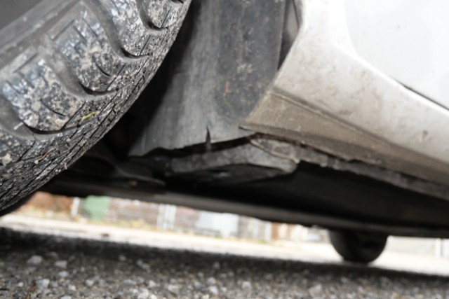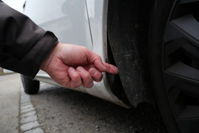 Beide Kotflügel von unten deformiert, beide Radhausabdeckungen gebrochen, Windgeräusche und Vibrationen gemäss GP