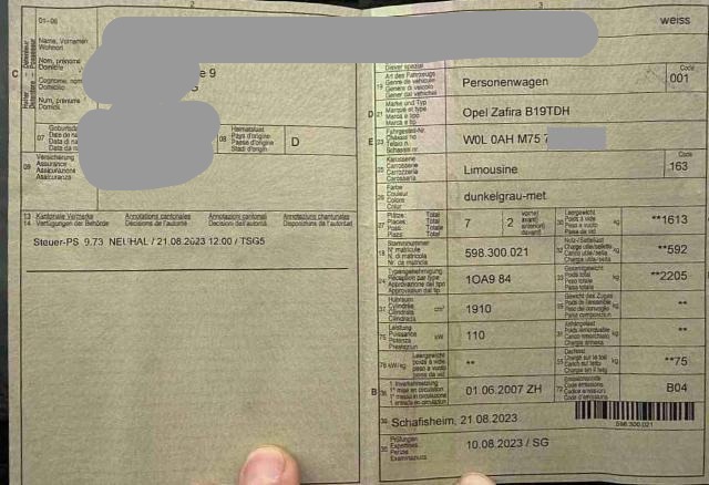 Fahrzeugdokumente vorhanden.