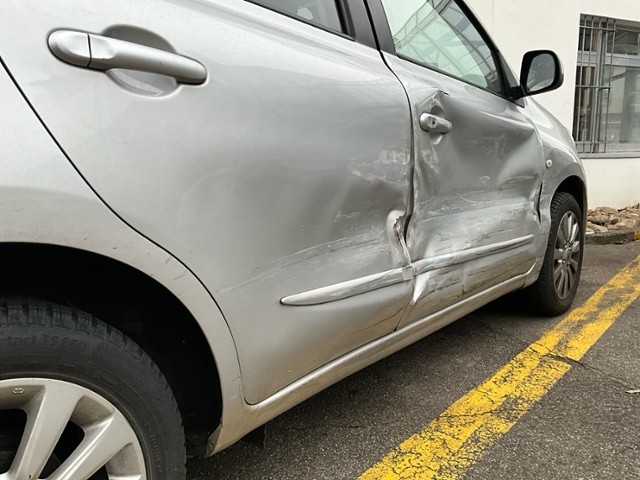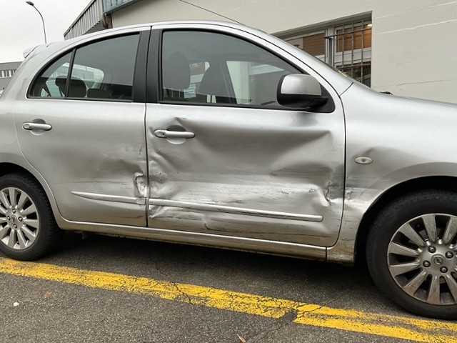 Rechte Seite beschädigt. Anstoss rechts im Bereich der A-Säule. Anstoss rechts im Bereich der B-Säule. Anstoss rechts im Bereich der C-Säule.