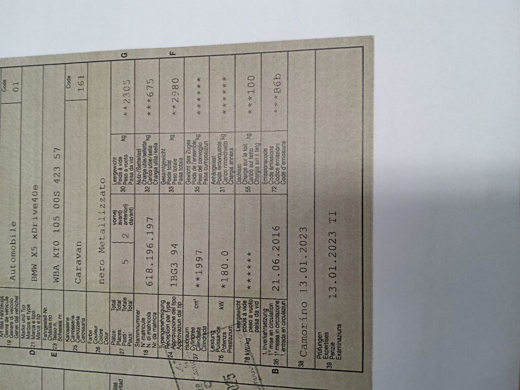 Non è stata effettuata alcuna ispezione tecnica (prova in officina) Piccoli danni da parcheggio sulle porte DX e SX Paraurti posteriore SX leggermente graffiato Parafango anteriore DX con graffi Cerchio ruota rovinato Pelle bracciolo leggermente rovinata Motor Getriebe Vorderachse Hinterachse Airbags ausgelöst: 0 Nein ( Abfallcode 16.01.04ak )