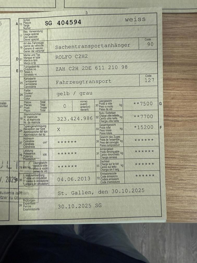 Technisch nicht geprüft LKW läuft und kann gefahren werden. Bremsen müssen ersetzt werden, Auspuffanlage ist undicht sonst fährt er. Diverse Abnutzungen und kleinere Beschädigungen Anhänger wurde am 30.10.2025 frisch vorgeführt. Bei Zuschlag muss das Fahrzeug innert 7 Tage bei der Auto Hilfe in Arbon abgeholt werden. Barbezahlung