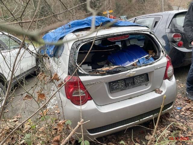 Beschreibung der Schäden: Fz stark beschädigt, Fz ungepflegt und nicht eingelöst (diente nur noch als ET-Spender). Die Heckscheibe und die Frontscheibe wurden mutwillig von Fremden Personen vor längerer Zeit eingeschlagen. Kein Schlüssel mehr vorhanden KM-Stand konnte nicht abgelesen werden