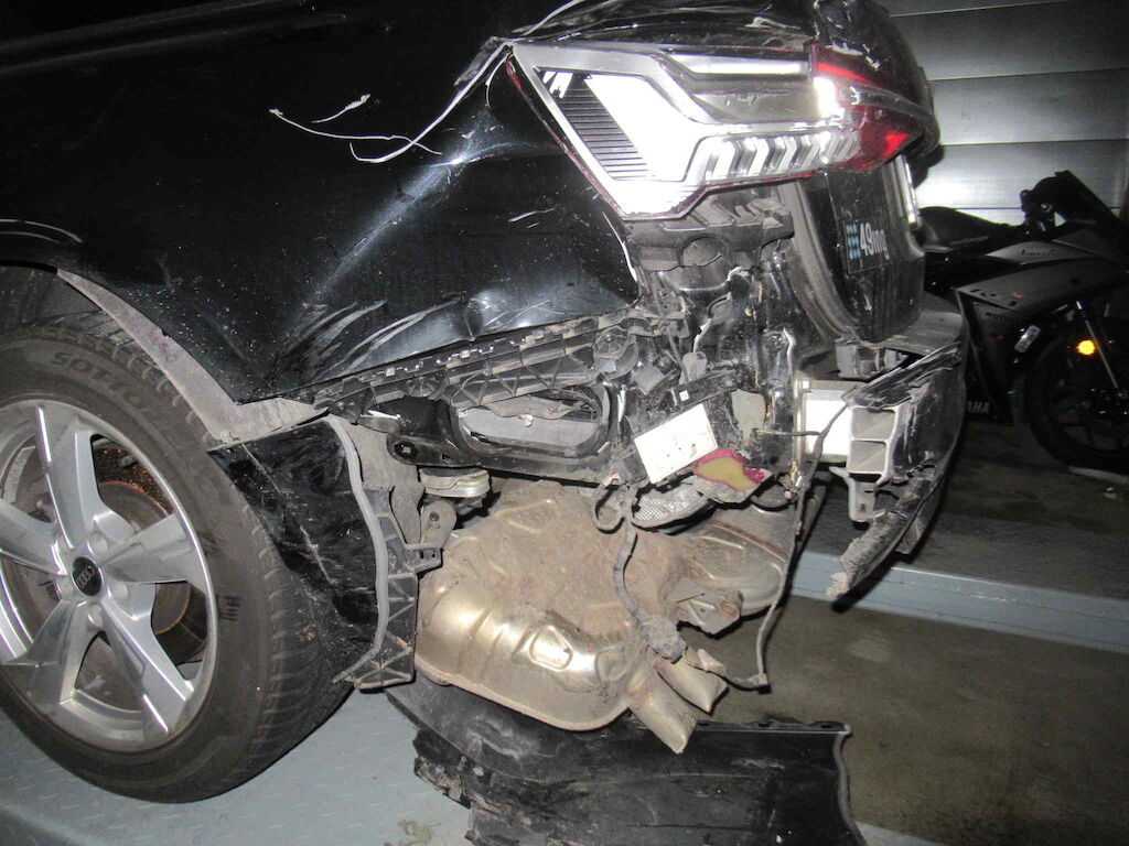 Fahrzeug hl massiv beschädigt Heckdeckel Stosssange Seitenwand Abgasanlage Fahrwerk hl Motor Getriebe Vorderachse Hinterachse Airbags ausgelöst: 0 unbekannt ( Abfallcode 16.01.04ak )