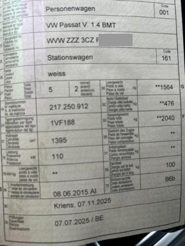 VW Passat Variant (3G5)(01.2016-> Comfortline BMT/Start-Stopp