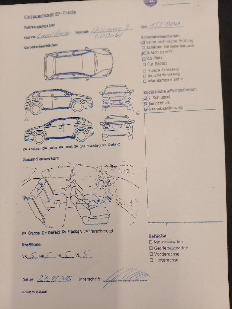Keine technische Prüfung (Werkstatttest) vorgenommen 8-fach bereift. DPF/FAP Filter nicht kontrolliert Motor Getriebe Vorderachse Hinterachse Airbags ausgelöst: 0 unbekannt ( Abfallcode 16.01.04ak )