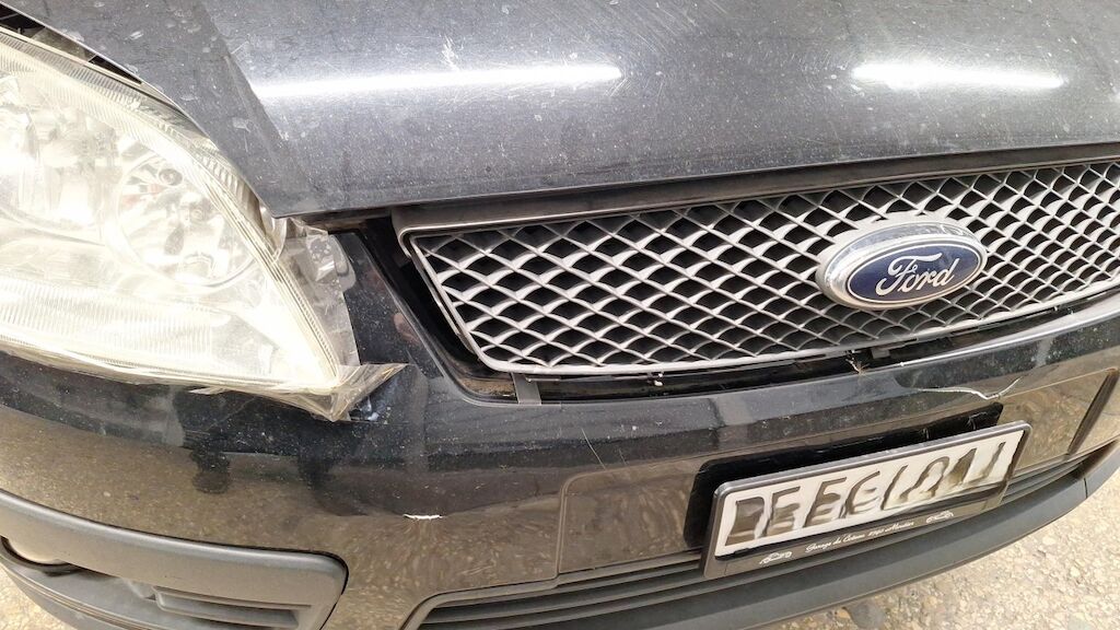 Choc frontal droit avec un chevreuil: pare-chocs, grille de calandre, phare droit, aile D, capot moteur, face frontale cassée, guides d'air, et condenseur de climatisation Motor Getriebe Vorderachse Hinterachse Airbags ausgelöst: 0 unbekannt ( Abfallcode 16.01.04ak )