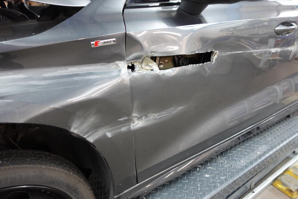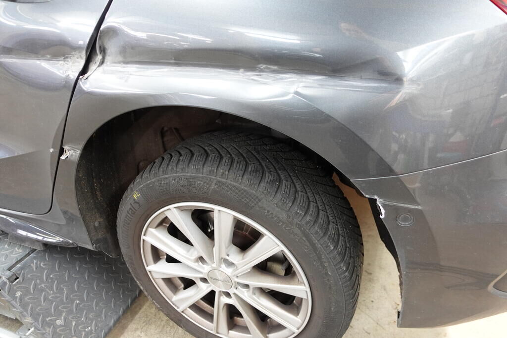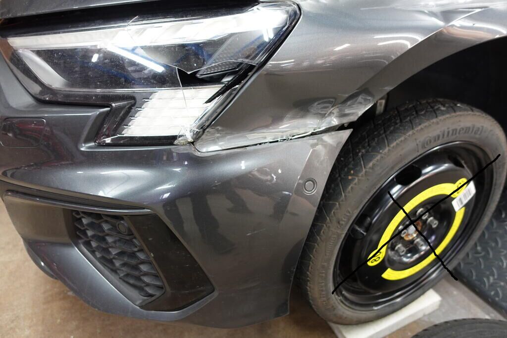 Ganze linke Seite. Haube, Scheinwerfer L, Kotflügel, beide Türen, Seitenwand, beide Stossstangen Rad vorne links wieder mit defekter Felge montiert und einem abgelaufenen aber intakten Reifen. Fz ist fahrbar. Motor Getriebe Vorderachse Hinterachse Airbags ausgelöst: 0 unbekannt ( Abfallcode 16.01.04ak )