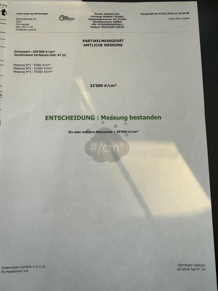 Dieselpartikelfiltertest wurde erfolgreich durchgeführt (Schriftlicher Ausdruck ist vorhanden).