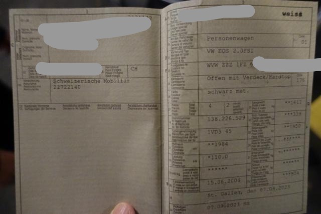 Fahrzeugdokumente vorhanden.