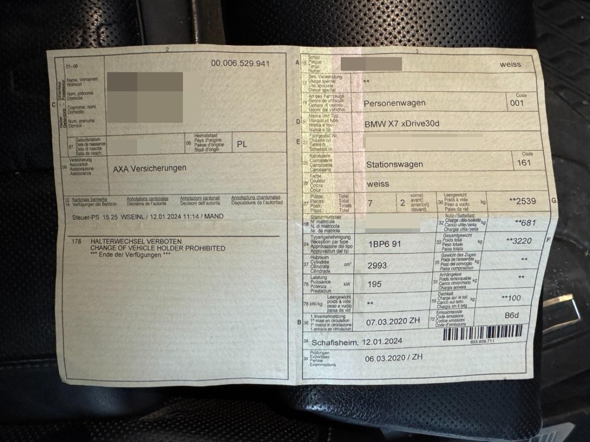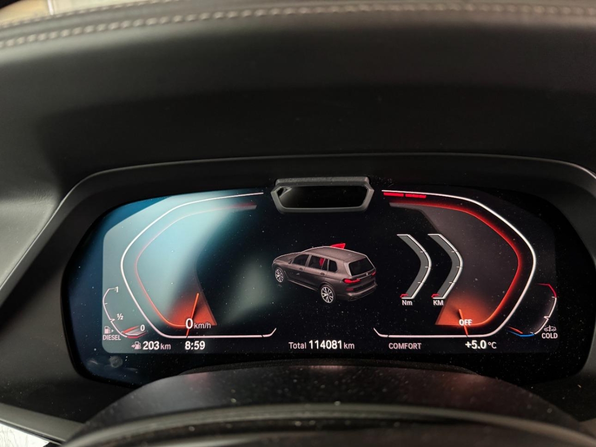 Assist: Tempomat mit Bremsfunktion, USB-Anschluss, BMW BluePerformance mit AdBlue, Licht: Heckleuchten in LED-Technik - einteilige LED-Heckleuchten mit Rauchglas Komponenten - Heckleuchte mit Schlusslicht, Bremslicht, Fahrtrichtungsanzeiger (LED-Technologie), Rücksitzlehne geteilt abklappbar, Instrumententafel in Sensatec, Driving Assistant, Galvanikapplikation, Wärmeschutzverglasung, Airbag: Knie-Airbag für Fahrer und Beifahrer, Lenksäule in Höhe und Tiefe einstellbar, Antiblockiersystem (ABS), Regensensor für Scheibenwischer vorne, Bremsenergie-Rückgewinnung, Mittelarmlehne hinten, Dynamische Stabilitätskontrolle (DSC), Bremsbelag-Verschleissanzeige, Head-Up Display, Display Schlüssel, Parkassistent vorne und hinten inkl. Rückfahrkamera, Steckdose 12V, Reifenkontrollanzeige, ConnectedDrive Services, Sitze: Sportsitze vorne, Lackierung: Uni-Lackierung, BMW Gestiksteuerung, Allradantrieb permanent, Cupholder, Diebstahlwarnanlage, Adaptiver LED-Scheinwerfer, Telefonie mit Wireless Charging, Gepäcktrennnetz, Seitenaufprall-Schutzsystem, Active Protection, LED Nebelscheinwerfer, Parkbremse, elektromechanisch, Armlehne vorne mit Ablagefach, Leder-Ausstattung Vernasca designperforiert, 3. Sitzreihe, Airbag: Airbag Fahrer und Beifahrer, Partikelfilter und Oxydationskatalysator, Real Time Traffic Information, Beide Make up-Spiegel beleuchtet, Dynamische Bremsleuchten, Umgebungsausleuchtung (Follow me home), Intelligenter Notruf, Klima: Klimatisierungsautomatik 4- Zonen, Abschliessbare Radschrauben, BMW Live Cockpit Professional, Bereifung mit Notlaufeigenschaft, Veloursfussmatten vorne und hinten, Schliessystem mit Zentralverriegelung, Licht: Fernlicht-Assistent, Pollenfilter (Staubfilter), Warndreieck, Adaptive 2-Achs Luftfederung, DAB+ (Digital Audio Broadcasting), Innenraumbeleuchtung, ISOFIX Kindersitzvorrichtung, Räder: Reifendruck-Kontrollanzeige, Assist: Crash-Sensor, Komfortzugang, Panorama-Glasdach, HiFi Lautsprechersystem, Airbag: Airbag Beifahrer deaktivierbar, Vorbereitung Apple CarPlay, Assist: ATTENTION ASSIST (Aufmerksamkeits-assistent), Window-Kopfairbags, TeleService, 8-Stufen-Automat sequentiell, Multifunktions-Sportlenkrad in Leder, Einstiegsschienen, Aussenspiegelpaket, Scheibenwaschdüsen beheizt, Connected Package Professional, Wi-Fi Hotspot, Vordersitze heizbar, Leichtmetallräder V-Speiche 750, 20J Reflexsilber, Remote Services, Akustikglas, Edelholzausführung Fineline Stripe braun hochglänzend, iDrive Controller Display, Airbag: Seitenairbag für Fahrer und Beifahrer, Media: Concierge Service, Servotronic, Licht: Ambientes Licht, Vordersitze elektrisch verstellbar, mit Memoryfunktion