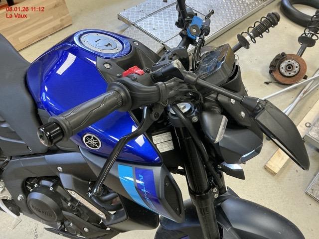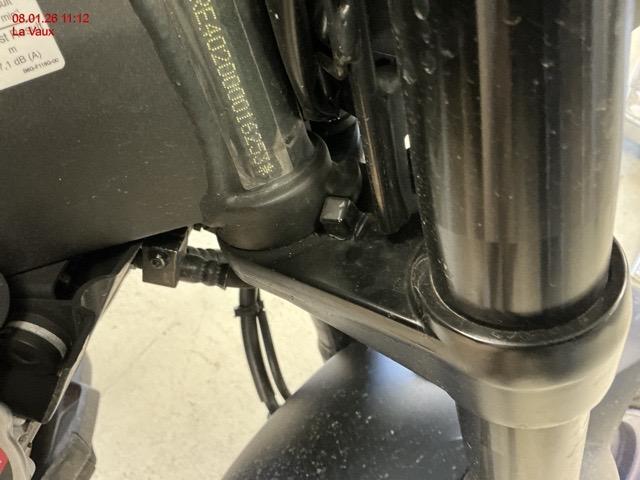 Beschreibung der Schäden: Guidon, rétroviseurs, Té de fourche, suspension av, disque de frein et jante avant, cache réservoir gauche, commande de vitesse, béquille, clignotant arrière, repose pied arg, plastique protection selle arg, liste non-exhaustive.