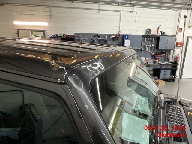 Stossfänger, Motorhaube, Kotflügel, Blinkleuchte, Radlaufblende vorne, Fensterrahmen, Spiegel, Türe vorne links und rechts, Seitenwand, Kotflügel hinten, Radlaufblende hinten, Schlussleuchte links, Stossfängerecke, Heckdeckel, Dach hinten, beide Dacheinsätze vorne, Reifen HL deformiert/gebrochen. Es ist unklar, wie lange der Motor nach dem Umkippen noch gelaufen ist = Risiko - Motor wurde bei der Besichtigung nicht gestartet. Risiko Motor / Risiko Radaufhängung HL / Vorbestandene Schäden: Gebrauchsspuren
