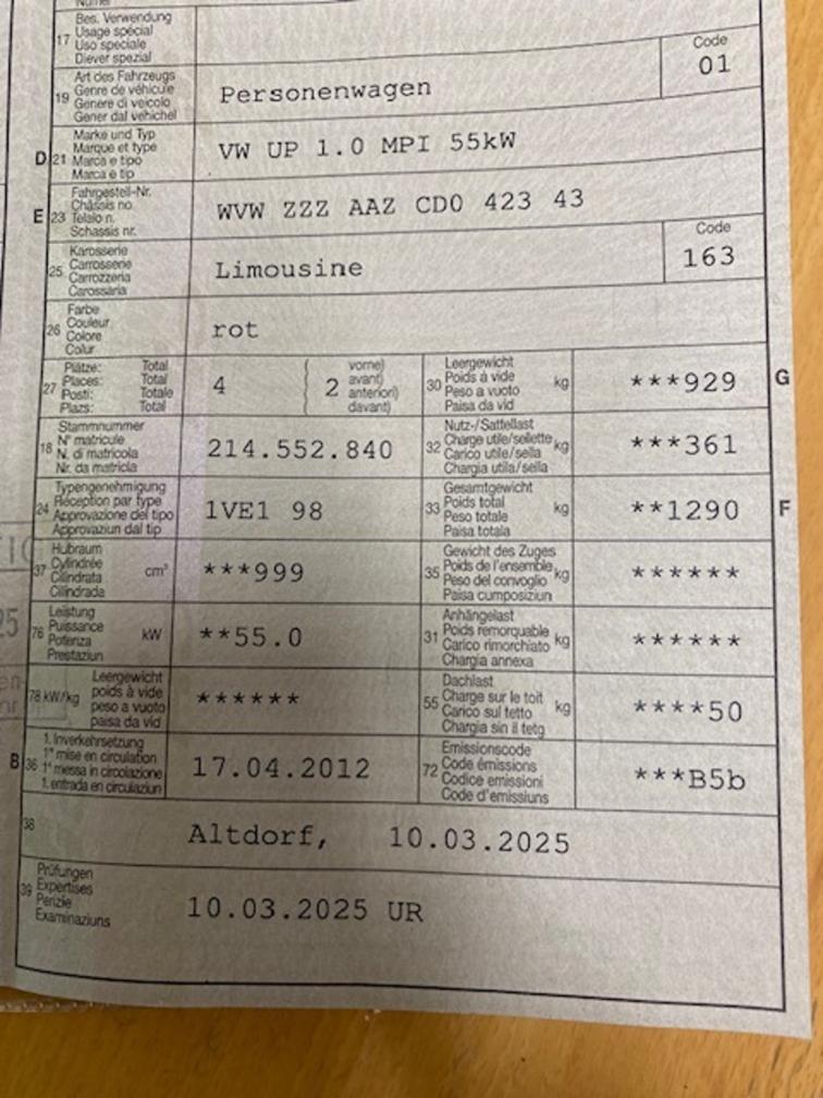 VW UP 1.0 MPI 55kW