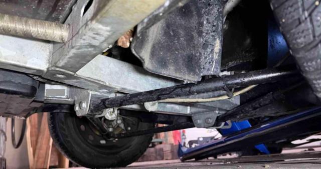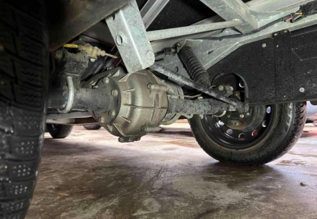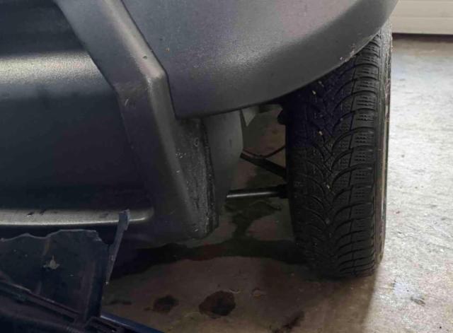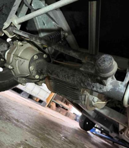 Vorderachse ist beschädigt. Aufhängungsteile vorne rechts beschädigt. Risiko Vorderachse. Risiko Hinterachse. Risiko Lenkung.