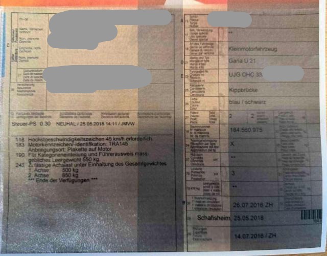 Fahrzeugdokumente vorhanden.