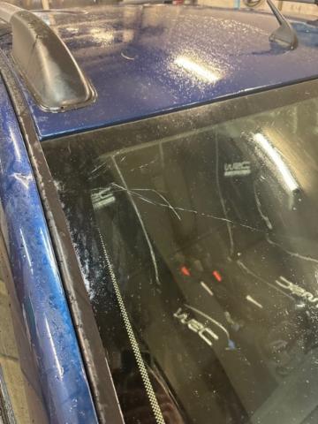 Windschutzscheibe ist gerissen. Seitenscheibe hinten rechts ist zerbrochen / beschädigt.