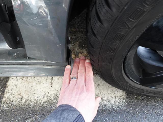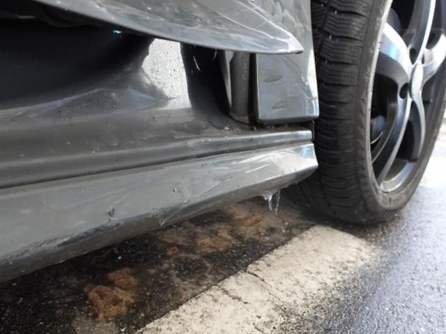 Aufhängungsteile vorne rechts beschädigt. Risiko Vorderachse.