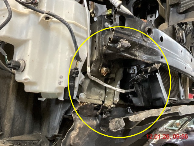 Beschreibung der Schäden: Totalschaden: Stossstange gebrochen, Kühlerpaket undicht, Scheinwerfer L+R gebrochen, Chassis Holmen re gestaucht, Front verzogen.
