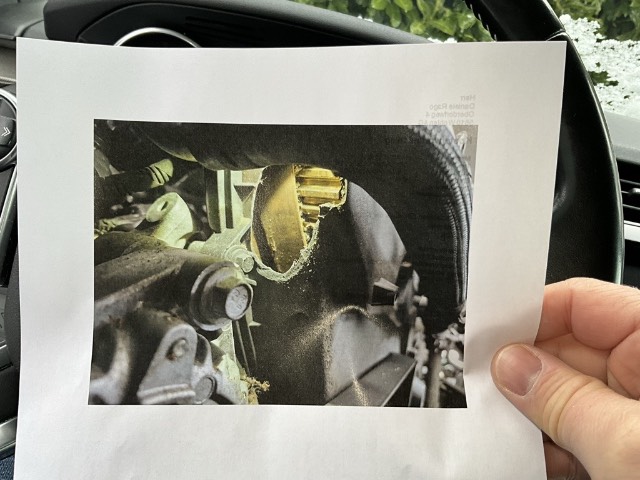 Beschreibung der Schäden: Motorschaden, Nockenwellenantrieb, Zahnrad Nockenwelle gebrochen. Verdacht auf angestandene Ventile, weitere mechanische Folgeschäden im Umfeld des Motors und dessen Nebenaggregaten können ohne Zerlegung nicht ausgeschlossen werden.