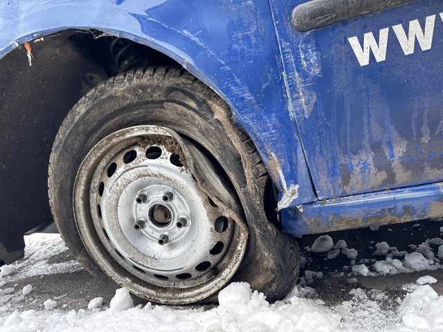 Aufhängungsteile vorne links beschädigt. Risiko Lenkung.