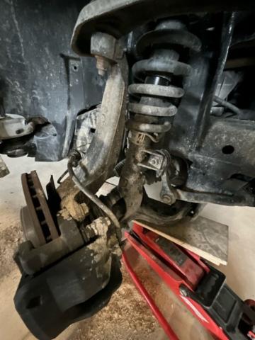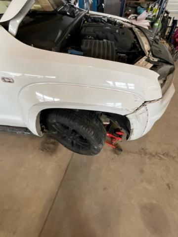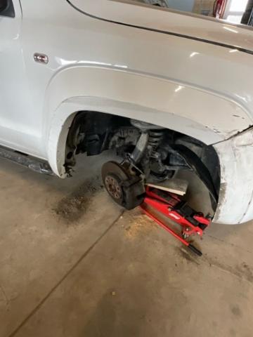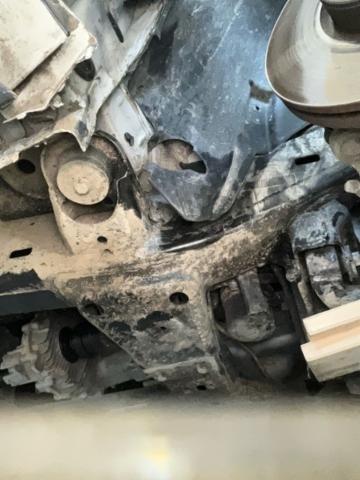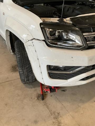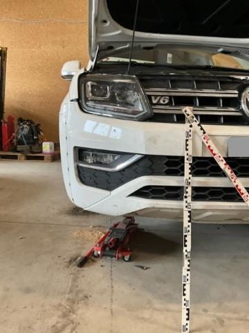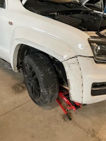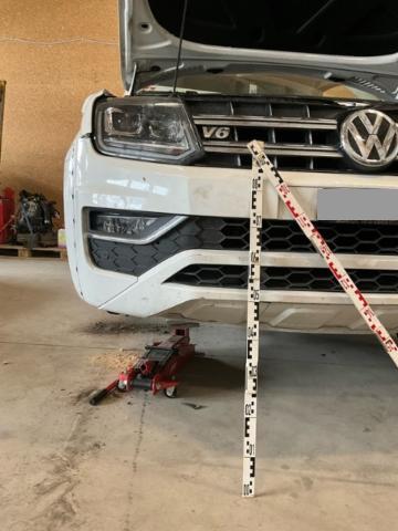 Vorderachse ist beschädigt. Aufhängungsteile vorne rechts beschädigt. Risiko Lenkung.