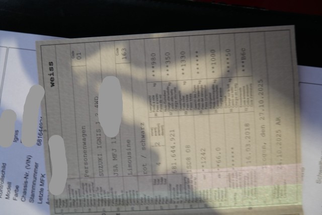 Fahrzeugdokumente vorhanden.