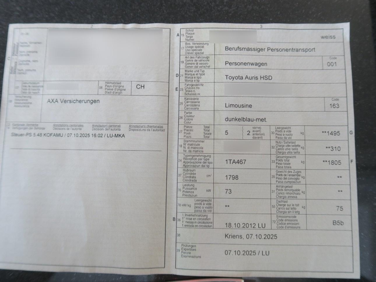 Fahrzeug wird ohne Taxi-Ausrüstung/Ausstattung verkauft.Die (vom Fahrzeugexperten) ermittelten Reparaturkosten beziehen sich auf das versicherte Ereignis. Allfällige zusätzliche, nicht versicherte Schäden/Vorschäden, sind in den Reparaturkosten nicht enthalten. Die deklarierten Ausstattungsmerkmale können von der effektiven Ausstattung abweichen.AchtungBei einem Hochvoltsystem - Spannungsfreiheit prüfen. Sicherheitshinweise und Betriebsanleitungen des Herstellers konsultieren und befolgen.