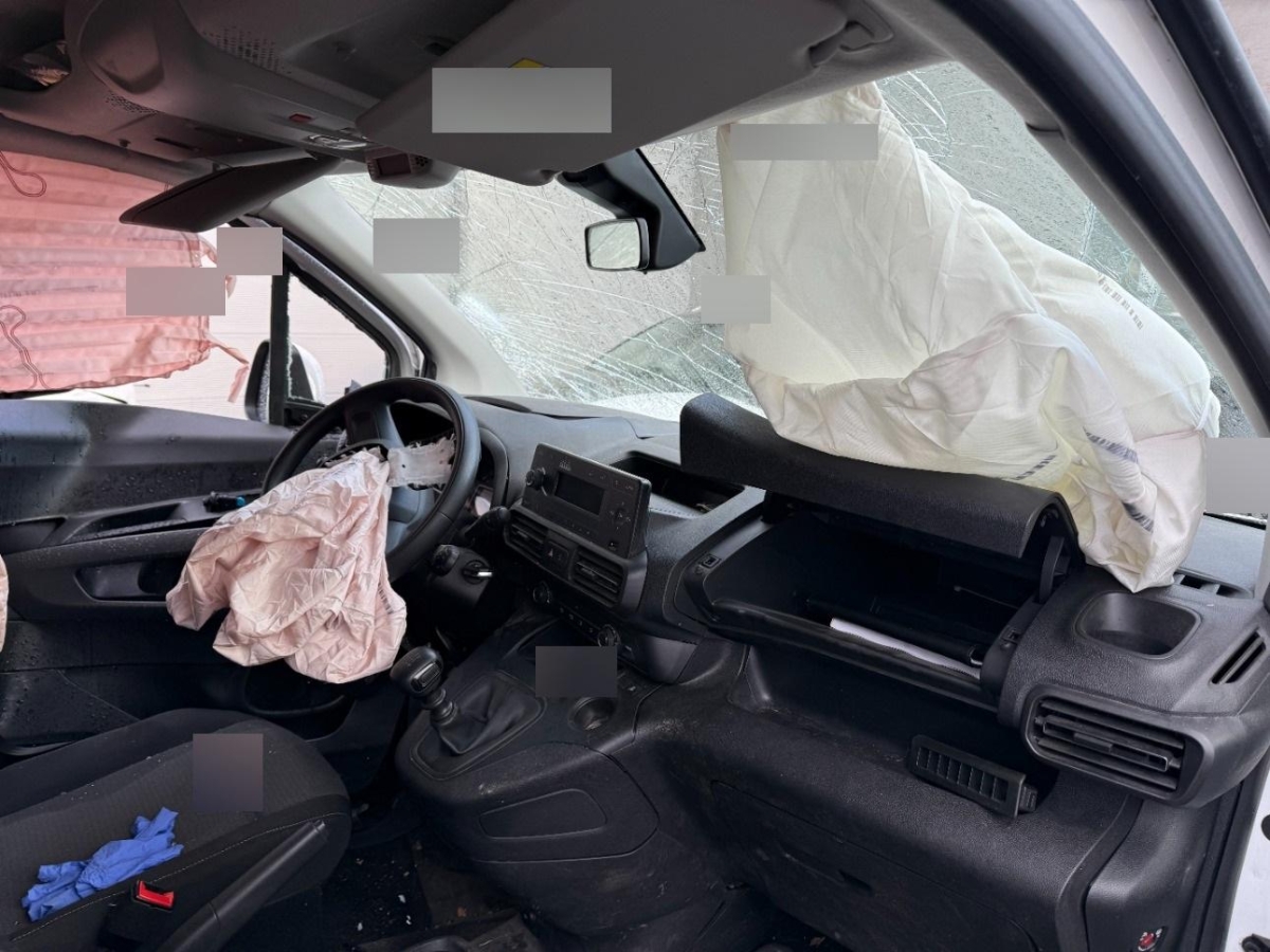 A-Säule, Achsträger, Airbag ausgelöst, Antrieb, Armaturenbrett, C-Säule, Dach, Federbein vorne links, Front, Front links, Frontblech, Frontscheibe, Gurtstraffer ausgelöst, Interieur, Klimakühler, Kotflügel links, Kühler, Kühlgitter, Lenkung, Längsträger vorne links, Motorhaube, Querträger, Rad hinten links, Rad vorne links, Radaufhängung vorne links, Radhaus vorne links, Scheinwerfer links, Scheinwerfer rechts, Seite links, Türe vorne links, Vorderachse, Wagenboden