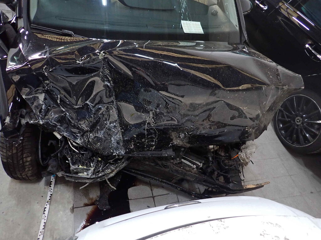 Pare-chocs Ac, renfort, capot, ailes Av, radiateurs, ventilateur, moteur?, pare-brise, montants, flanc D, méanique Av, airbaigs, ceintures et prétentionneurs Motor Getriebe Vorderachse Hinterachse Airbags ausgelöst: 5 unbekannt ( Abfallcode 16.01.04ak )