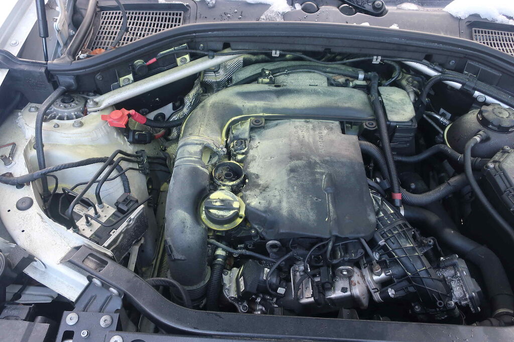 Brandschaden Motorraum Ventildeckel Motor Getriebe Vorderachse Hinterachse Airbags ausgelöst: 0 unbekannt ( Abfallcode 16.01.04ak )