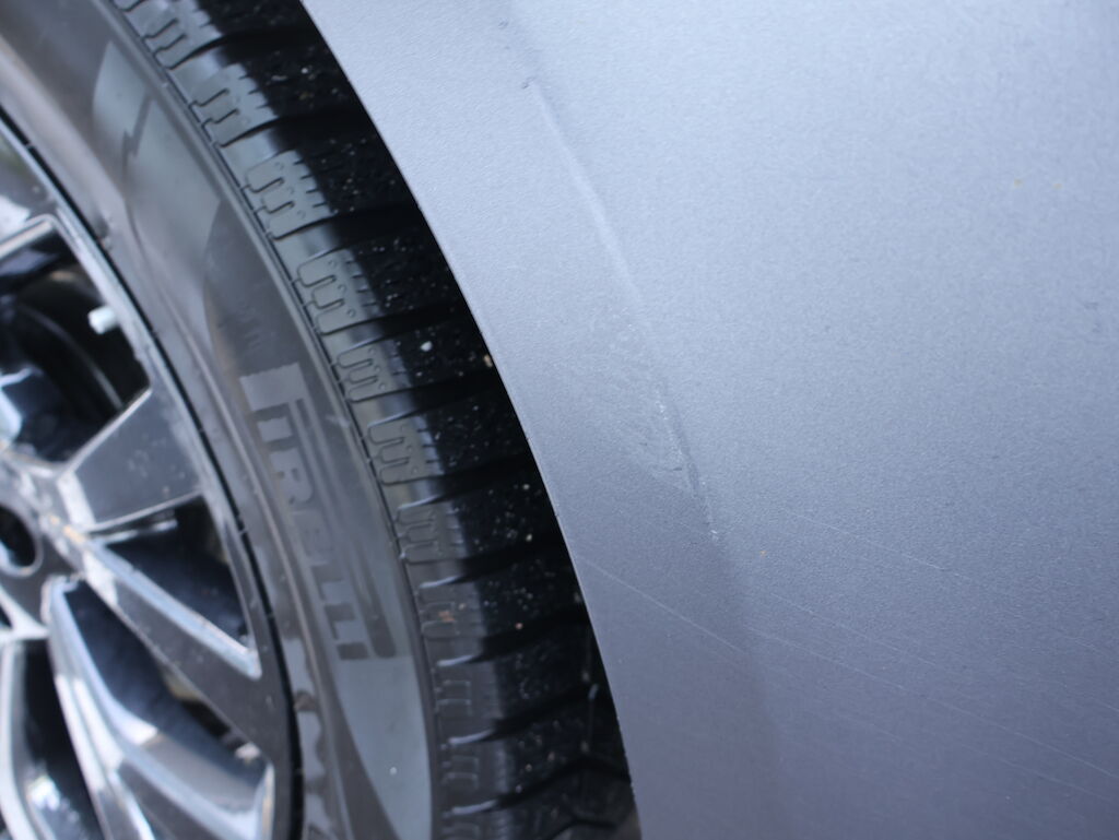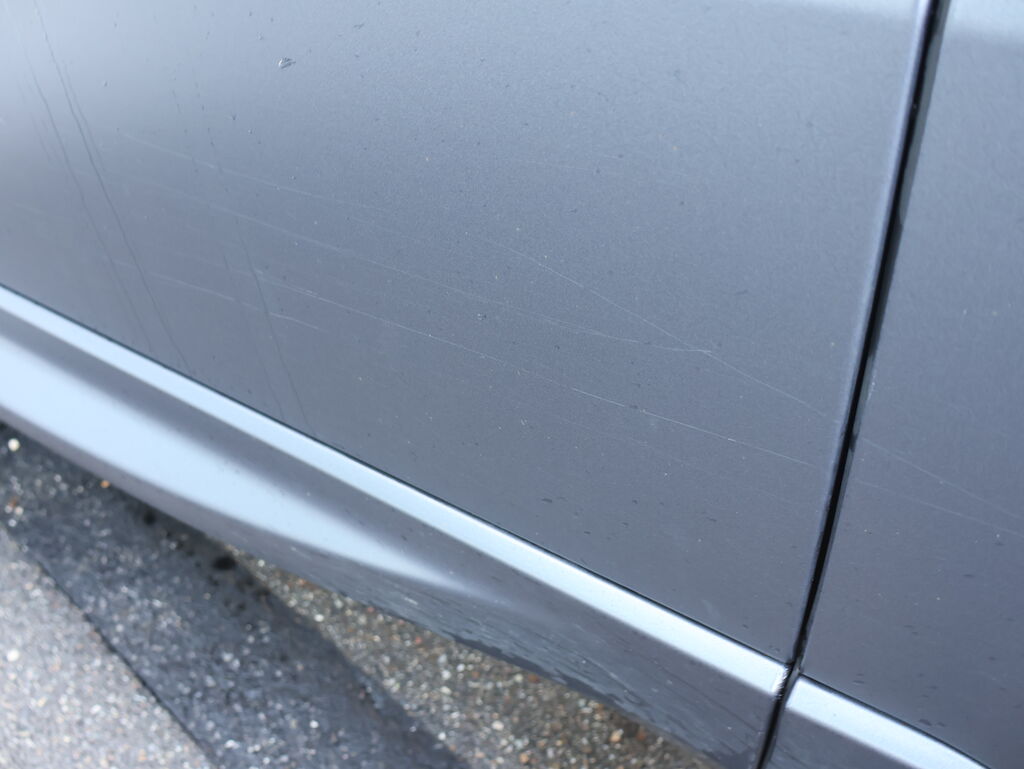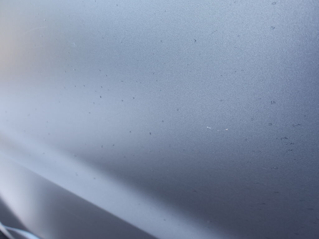 Das Fahrzeug ist matt grau Foliert, Originalfarbe schwarz met.