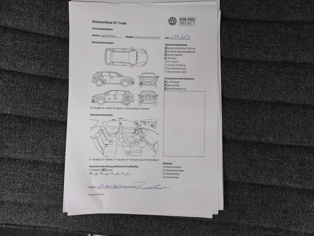 Keine technische Prüfung (Werkstatttest) vorgenommen. Service ist fällig. Diverse Schäden an Karosserie/Lack. Folierung hat diverse leichte kratzer. 8-fach bereift. 22" Sommerräder Zustand? Fahrzeug ab Platz, ohne Garantie und Aufbereitung. Motor Getriebe Vorderachse Hinterachse Airbags ausgelöst: 0 unbekannt ( Abfallcode 16.01.04ak )