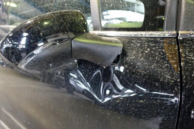 Tür vorne rechts ist eingedrückt. Tür hinten rechts ist eingedrückt.