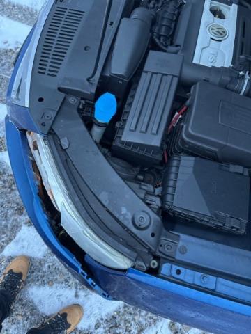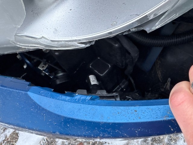 Front eingedrückt. Frontblech/Maskenblech eingedrückt. Fahrzeugvorbau verschoben.