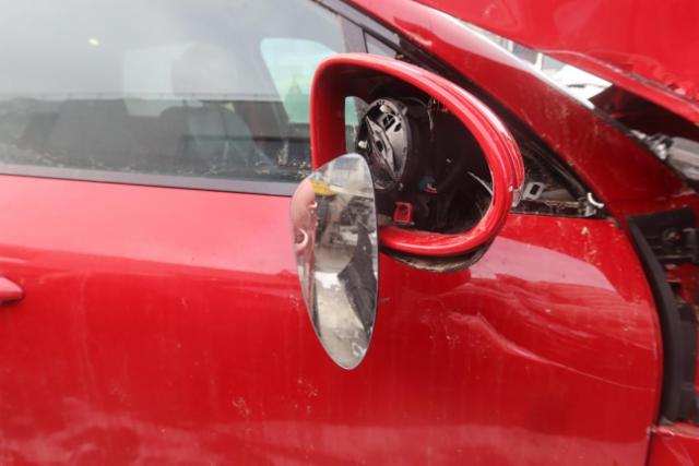 Linke Seite beschädigt. Anstoss links im Bereich der A-Säule. Tür vorne links ist eingedrückt.