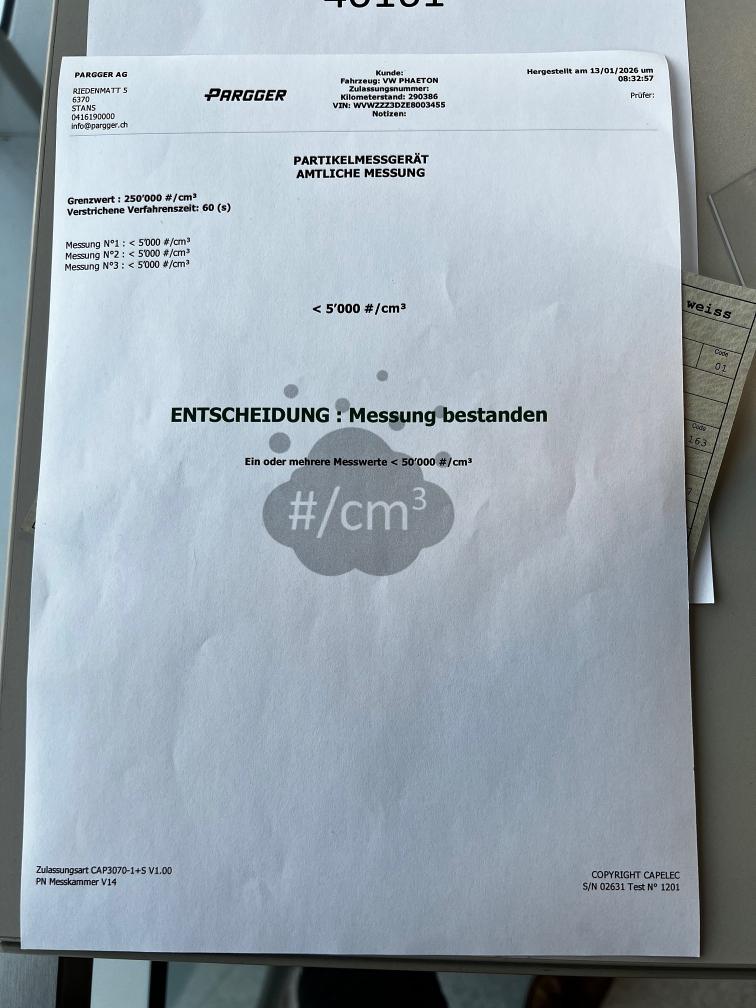 Dieselpartikelfiltertest wurde erfolgreich durchgeführt (Schriftlicher Ausdruck ist vorhanden).