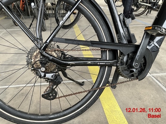 Schutzblech vorne abgerissen, Akku fehlt, Seitenständer verbogen. Diverse Kratzer. Kein Ladegerät und keine Schlüssel mehr vorhanden
