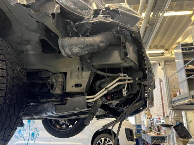 Front eingedrückt. Front rechts eingedrückt. Kotflügel vorne rechts eingedrückt. Motorhaube eingedrückt. Frontblech/Maskenblech eingedrückt. Radhaus vorne rechts eingedrückt / gestaucht.