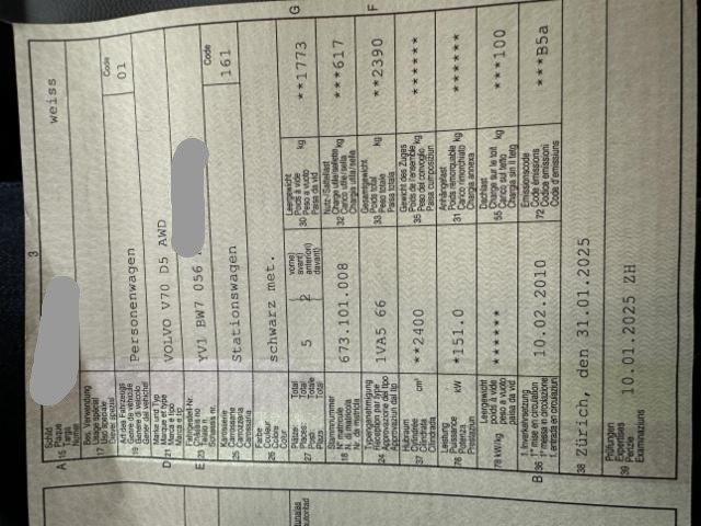 Klimaautomat Airbag Fahrer und Beifahrerseite Elektronische Wegfahrsperre Sitzheizung vorne Elektrische Fensterheber vorne + hinten Aussenspiegel elektrisch verstellbar und heizbar Tempomat Bordcomputer Nebelscheinwerfer Zentralverriegelung mit Fernbedienung Aussentemperaturanzeige Staub- und Pollenfilter Innenspiegel automatisch abblendbar Lenkrad verstellbar SIPS Kopf-/ Schulterairbag Regensensor Geartronic Kopfstützen vorne und hinten ABS und EBV Elektr. Bremskraftverteilung Lederschalthebel Lendenwirbelstützen Vordersitze Textilfussmatten Antibeschlagssensor Bremsassistent EBA Scheinwerferwaschdüsen Tagesfahrlichtschaltung Leder Isofix-Vorbereitung Rücksitze aussen Park-Distanz-Sensor hinten Mittelarmlehne vorne mit Staufach Bi-Xenon-Scheinwerfer+Waschanlage/ aktives Kurvenlicht Vordersitze verstellbar Aussenspiegel elektrisch anklappbar inkl. Bodenleuchten Befestigungssystem für Tragtaschen Make-up-Spiegel beleuchtet DSTC Fahrdynamikregelung WHIPS Schleudertrauma-Schutzsystem Mittelarmlehne h mit Getränkehalter/ Staufach Getränkehalter in Tunnelkonsole Steckdose 12 V im Gepäckraum Multifunktions-Lederlenkrad Zusatzheizung elektrisch Kopfstützen hinten elektrisch umklappbar Elektr. Fahrersitz/ Memory für Fahrersitz und Aussenspiegel SIPS Seitenairbag Fahrer und Beifahrerseite Beifahrer Rücklehne umklappbar Pack Winter Colorverglasung Dieselpartikelfilter Audiosystem High Performance Radio/ CD MP3 Heckklappe elektrisch Aktivkohlefilter mit automatischer Umluftschaltung Seitenscheiben mit wasserabweisender Oberfläche Dekorausstattung Echtholz Modern Leichtmetallräder 17" Canicula Pack Winter mit Bi-Xenon und Kurvenlicht Rücksitzbank im Verhältnis 40/20/40 Polster/Innenraum in Leder Sitze m. verstärktem Seitenhalt Leichtmetallräder 17" Balder Garantie 5 Jahre/ 150'000 km Keine Gewähr auf die Angaben der Serienausstattungen