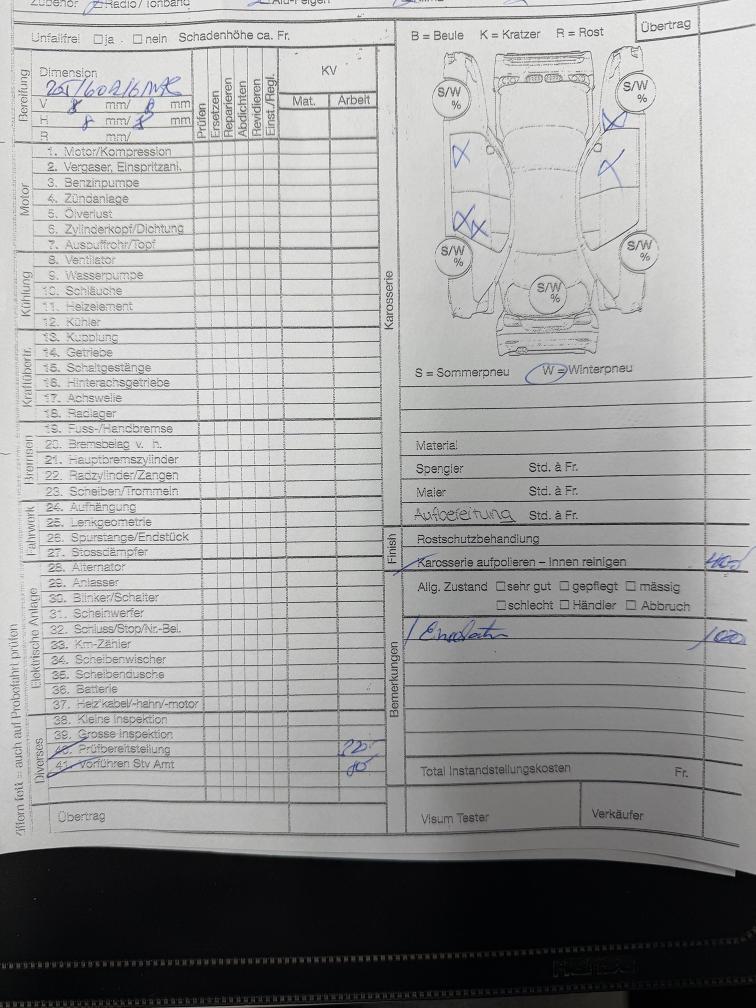 Kratzer an Türen links und Türe vorne rechts und Kotflügel hinten kleiner Hund wurde in Box mitgeführt - keine Innenschäden