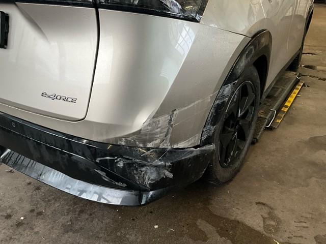 Aufhängungsteile vorne rechts beschädigt. Hinterachse rechts beschädigt. Lenkgetriebe ist beschädigt.