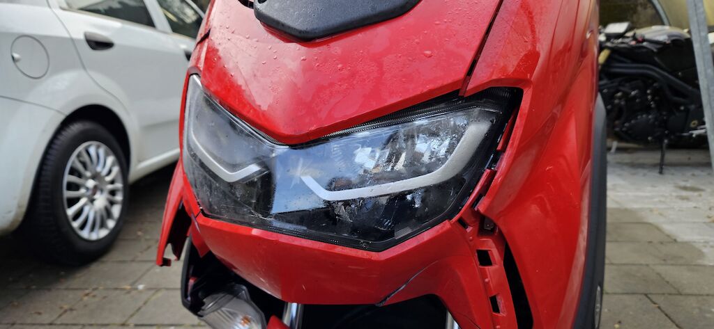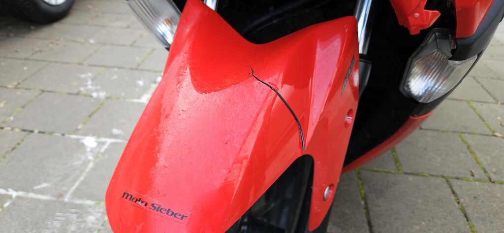 Frontschale, Frontscheibe, Scheinwerfer, Seitenschalen VL + VR, Heckschale HR+HL, Heckleuchte, Nummerträger, Forderradaufhängung verzogen, Hinterradaufhängung (Hinterrad steht schief) Risiko: Rahmen, Auspuff, Felgen vorne und hinten. Roller wurde vom hinteren Fahrzeug ins das vor dem Roller stehende Fz gestossen. Motor Getriebe Vorderachse Hinterachse Airbags ausgelöst: 0 unbekannt ( Abfallcode 16.01.04ak )