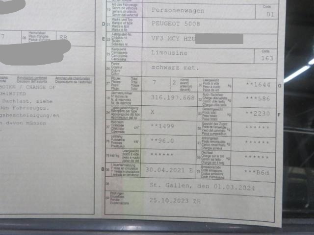 Airbag Fahrer und Beifahrerseite Elektrische Fensterheber vorne + hinten Aussenspiegel elektrisch verstellbar und heizbar ASR Antriebsschlupfregelung Seitenairbag Fahrer und Beifahrerseite Zentralverriegelung mit Fernbedienung Höhenverstellbarer Beifahrersitz Innenspiegel automatisch abblendbar ABS und EBV Elektr. Bremskraftverteilung Leichtmetallfelgen 18" Dachreling Alu Deaktivierung Beifahrerairbag Vorhangairbags vorne + hinten DSC Dynamische Stabilitäts-Control Servolenkung elektrisch Zwei Zonen-Klimaautomatik 12 V Steckdose 3x Pack Visibilité Spurassistent Fussmatten vorn und hinten Keyless Schliess- und Startsystem Höhenverstellbarer Fahrersitz Sitzbezüge in Stoff/ Kunstleder 2 Einzelsitze in der 3. Reihe Reifendruck-Sensoren RDS Seitenscheiben im Fond und Heckscheibe abgedunkelt Berganfahrhilfe Fernlichtassistent Elektrische Parkbremse Einparkhilfe hinten Geschwindigkeitsregler und - begrenzer DAB Digital Audio Broadcast Schwarzes Dach Pedalerie in Aluminium Reifen-Reparatur Set Stop + Start System Pack Kinder Einparkhilfe vorne LED Tagfahrlicht Aussenspiegel elektrisch einklappbar Totwinkel-Assistent Peugeot Connect SOS/ Assistance Keine Gewähr auf die Angaben der Serienausstattungen Lederlenkrad perforiert Radio/ MP3/ USB/ Bluetooth/ Fernbed. am Lenkrad Sitzbezüge in Alcantara/ Kunstleder Automatische Notbremsung Verkehrsschild-Erkennungssystem Mirror Link Pack City Navigationssystem/ Peugeot Connect Garantie 3 Jahre/ 80'000 km Full LED Technology Pack Drive Assist Plus Drei Isofix-Kindersitzbefestigungen hinten